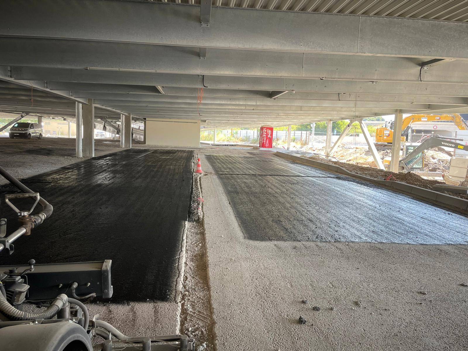 Dans le cas d’une intervention en répandeuse, la couche d’émulsion de bitume est recouverte d’enrobé.
